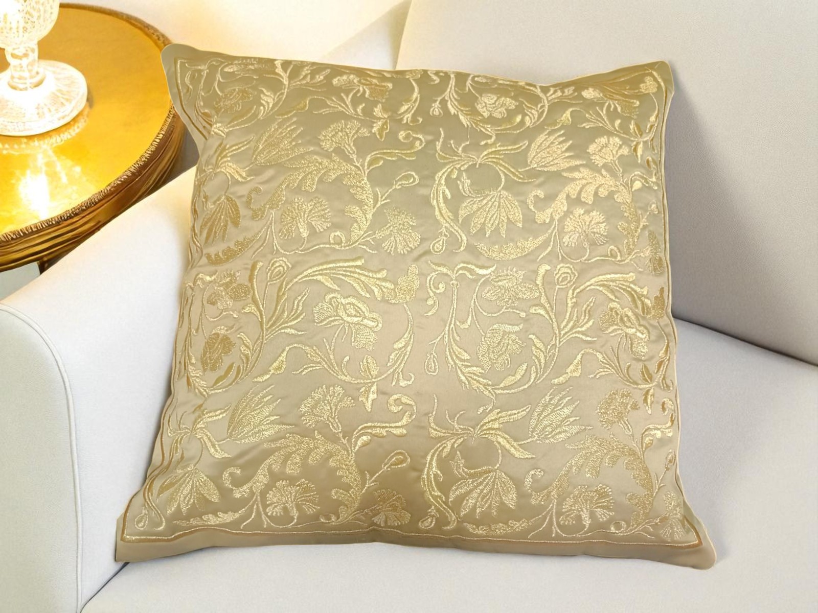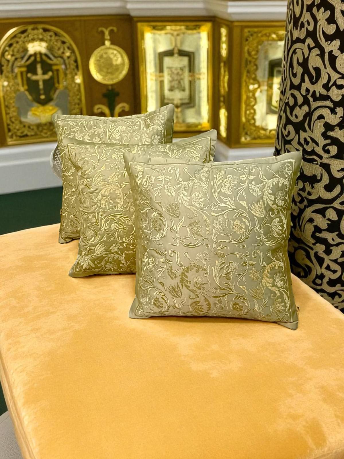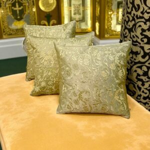 Add a statement of pure luxury to your space with our Metallic Gold Cushion Cover. Made from silky, shiny fabric, this cushion cover radiates luxury and sophistication. The self gold metallic embroidery adds subtle texture and depth, creating a seamless monochrome elegance that gleams beautifully under light.