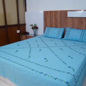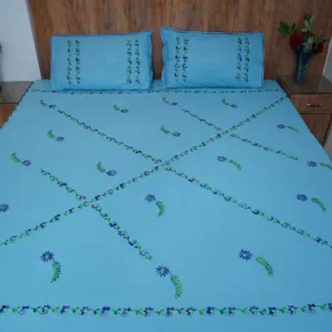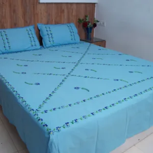 Elevate your bedroom decor with our Handwork premium blue cotton bedsheet, beautifully adorned with all-over blue floral embroidery. Perfect for daily use and special occasions, it adds a touch of sophistication while creating a bright and lively ambiance.